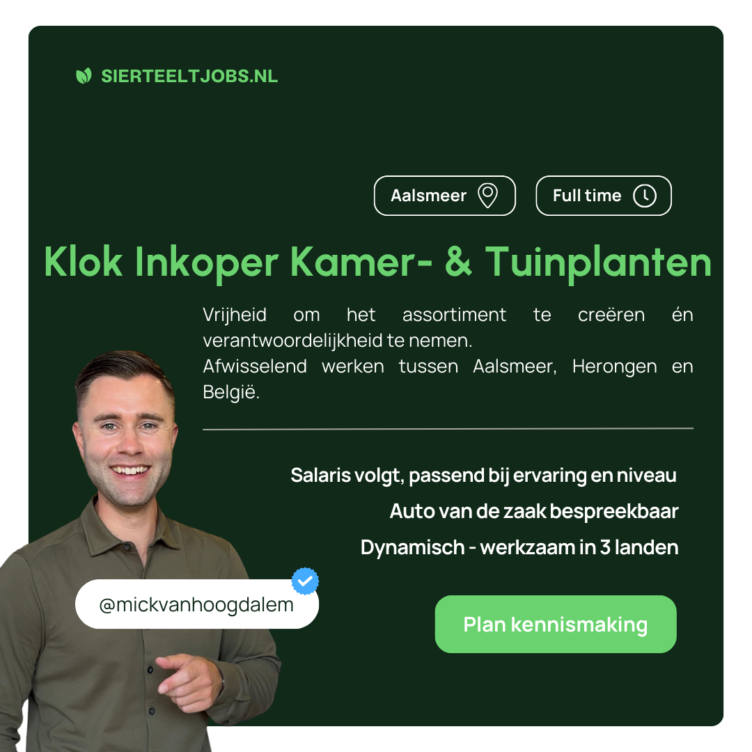 Voor een groot en groeiend tuincentrum in België, met meerdere fysieke winkels én een sterk e-commercekanaal, zoeken wij een Klok Inkoper Kamer- & Tuinplanten.